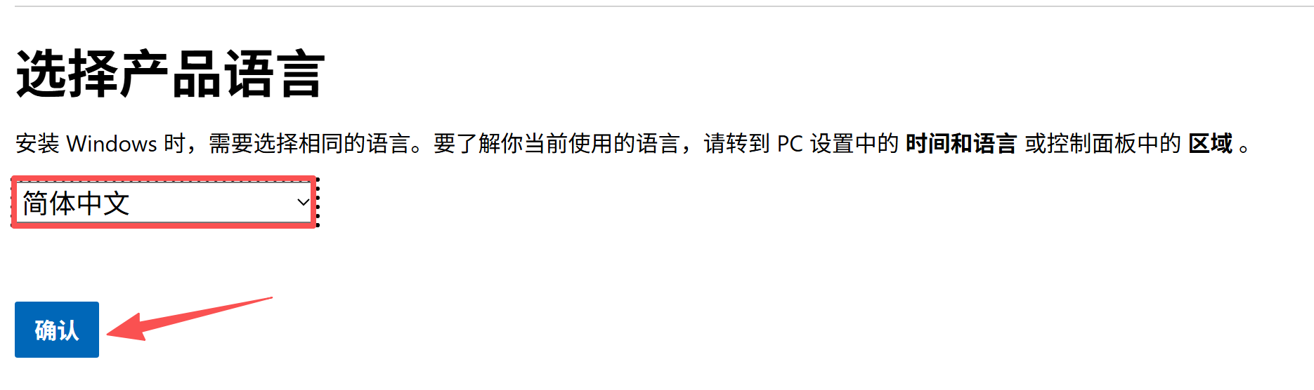 选择“Windows 11 (适用于 x64 设备的多版本ISO)”时需要再次选择语言